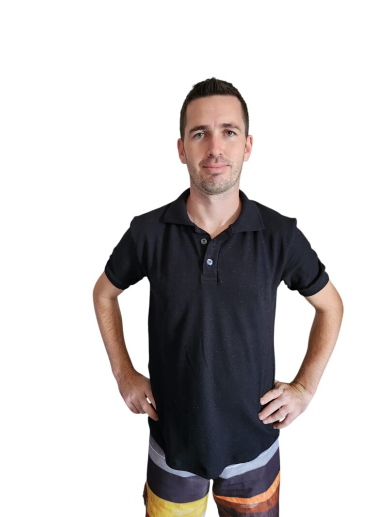 Camiseta Gola Polo Piquet Botonê Preto com Rosa